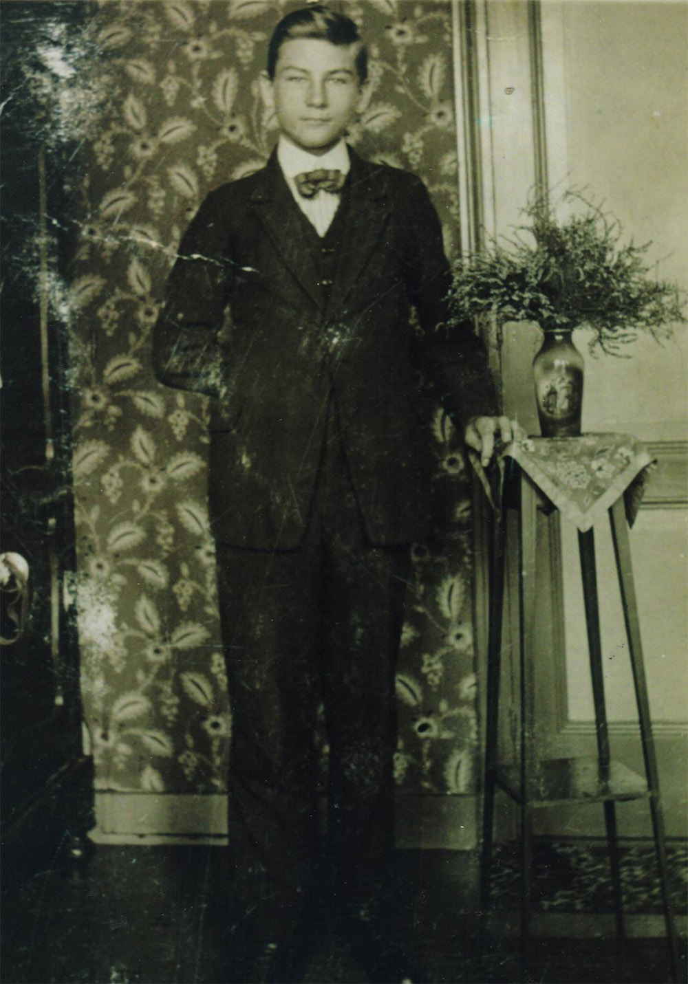 Ruim een eeuw geleden werd Arie in Rotterdam geboren, op 13 augustus 1907. Waar precies is niet bekend, hoewel familieleden ooit vertelden dat het in de Nicolaas Sasstraat moet zijn geweest. Op een van de oudste foto’s van hem zal hij een jaar of acht zijn. Of deze foto in Rotterdam en zelfs in de Nicolaas Sasstraat is gemaakt, is niet zeker. Arie, zijn zus en zijn moeder hebben ook een tijdje in Dordrecht gewoond. Dat plaatje kan best uit die jaren zijn.