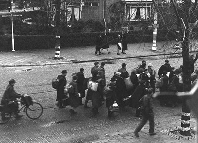 ‘Op een dag kwam ik uit school. Zoals altijd liep ik langs het eindpunt van lijn 9 tegenover ons huis op de Lange Hilleweg. Dit keer was het er abnormaal druk. Veel ouderen, maar ook jongeren en kinderen, zelfs een paar zuigelingen. Ze hadden veel bagage bij zich, koffers, tassen, opgerolde dekens en zo. De meeste droegen winterjassen, maar het was nog lang geen winter. Ik was zelf niet dik gekleed. Veel later begreep ik pas dat die mensen hun dikke jassen aan hadden om als het winter werd in ieder geval iets warms bij zich te hebben. Het was mijn tweede schooljaar, dus moet het ongeveer 1943 zijn geweest. Ik wist niet waar die mensen heengingen en waarom. Op vakantie? Nee, dat gebeurde bijna niet meer. Ze gingen naar Westerbork, dat hoorde ik pas later.