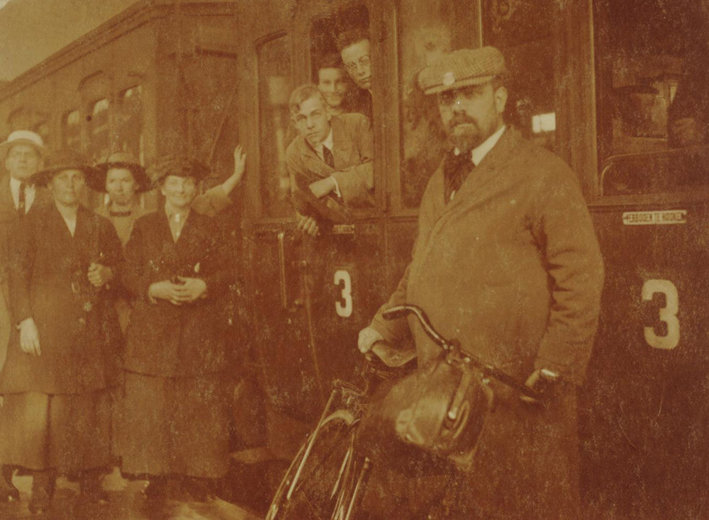 Dus vertrok hij in 1923 met de trein naar dat voor die tijd nog verre Neanderthal. Hij werd uitgeleide gedaan door kerkleden en natuurlijk zijn moeder. Hij hangt half uit het treinraam. In het bagagerek zal zijn gloednieuwe koffer hebben gelegen, een zogenaamde fiberkoffer. Dus niet van leer, dat was te duur, maar van een soort kunststof dat zijn tijd vooruit was. Het voordeel ervan was dat de koffer zelf veel lichter was dan zo’n exemplaar van zwaar varkensleer.